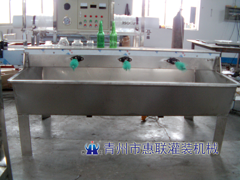 六头轨道式刷瓶机用于各种瓶型的浸泡、内刷。该机结构合理,操作简单,维修方便,广泛适用于饮料厂、食品厂、化工厂等企业的生产。整机与水接触和外露部件用不锈钢制造,外型美观。 轨道式刷瓶机主要技术参数: 刷瓶工位:6 水槽体积:2000×1200×380mm 配用电机:Y2-802-6 960转/分 0.55千瓦 刷瓶转速:600转/分